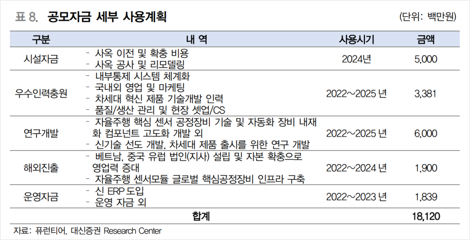 퓨런티어 공모자금 사용계획은 물론 이번 공모자금 240억원으로 시설확충 및 연구개발을 하겠지만 사실상 자율주행센싱이 집약된 자율주행레벨 4단계의 상용화는 2027년경 가능해서…. 성장성만 보고 투자하기에는 멀 것 같아요.