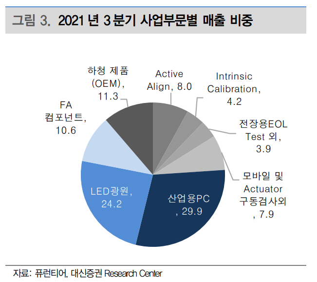 ▲퓨론티어의 매출 비중 중=사실 퓨론티어의 주요 매출은 자율주행 부품이 아니라 LED 광원(24%), 산업용 PC(30%), 컴포넌트(11%) 등입니다.