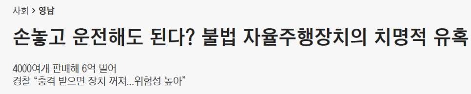 출처 : 조선일보, 그래서 핸들을 잡지 않고도 장시간 운전할 수 있도록 불법 유지 모듈(손잡이를 잡지 않아도 소리가 나지 않도록 설정)을 설치한 불법 업체가 구속되기도 했습니다.