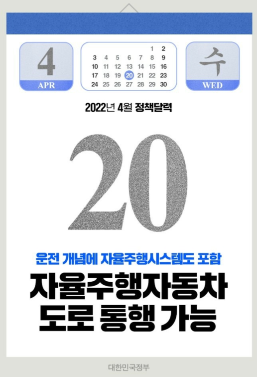 4월 20일부터 자율주행자동차 합법적으로 도로통행 가능