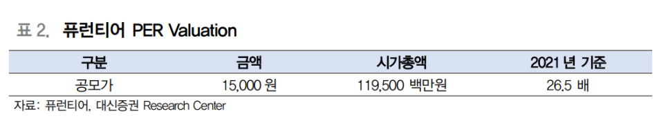 공모가 기준 퓨런티어 PER 주당 ᅵᄌ 基準 フュー 기준 퓨런티어의 PER는 26.5배입니다