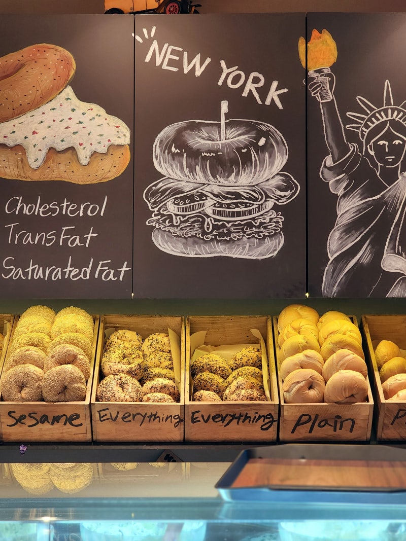 #니카바카 베이글 2호점이라고 합니다.1호점도 근처에 있었던 것 같은데…^^니카바카베이글 창업자인 조는 #뉴욕3대 베이글 맛집으로 알려진 #에사베이글 기술자 샘을 삼고초려 영입했다고 합니다. 그는 유대인 대대로 내려오는 정통 롤러 방식의 장인으로 현재도 에사베이글과 니커버카베이글두 #뉴욕베이글맛집의 반죽롤러 기술자로 근무하고 있습니다.