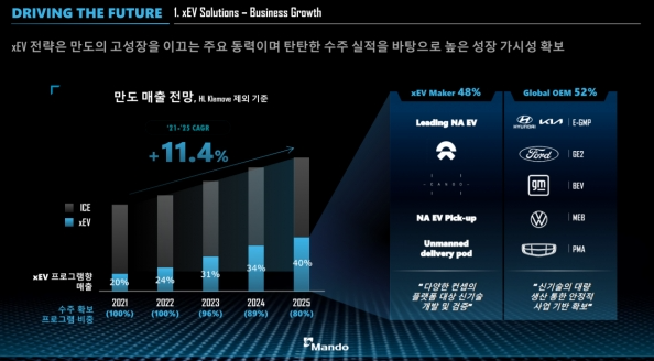 만도는 국내 자율주행 전기차 관련주로 손꼽히는 업체입니다. 축전지의 전기 자동차 BEV를 직접 생산하는 메이커가 아닙니다. 제동, 조향, 서스펜션 등의 시스템을 생산하는 제조사입니다.