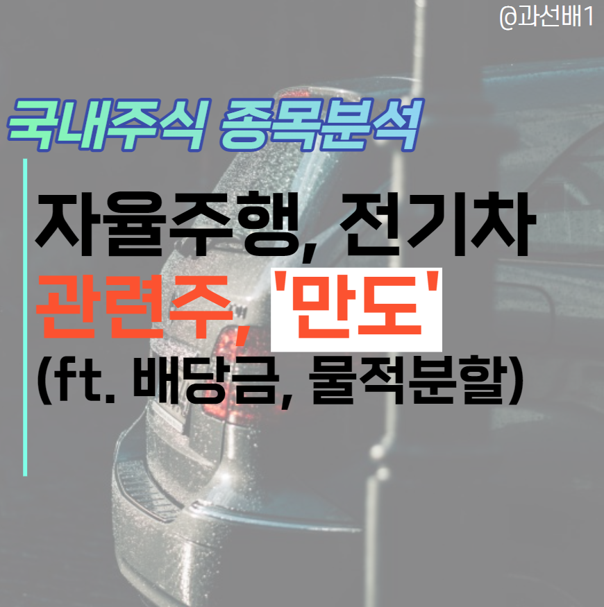 만도합병후의 주가전망:전기자동차부품관련주(ft.자율주행물적분할,배당정보)오늘은 만도 차이나홀딩스 합병후의 주가전망에 대해 알아보았습니다. 전기자동차 부품 관련주로서의 매력은 충분하지만, 한쪽 날개 자율주행 부문이 물적 분할로 파괴되어 투자매력도는 이전보다 떨어졌다고 생각합니다.