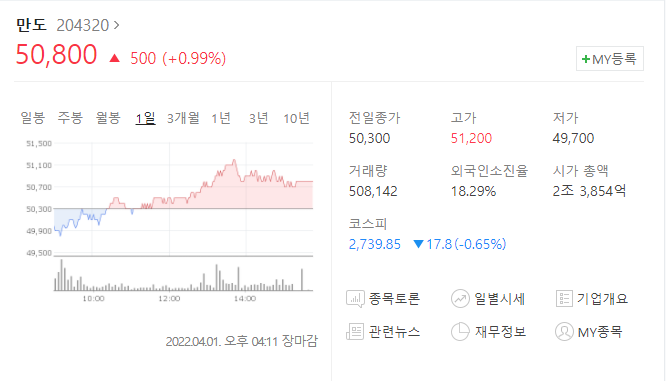 중국 법인의 합병시에, 만도의 주가에는 긍정적인 영향도가 크다고 하는 개인적인 사견을 덧붙입니다.