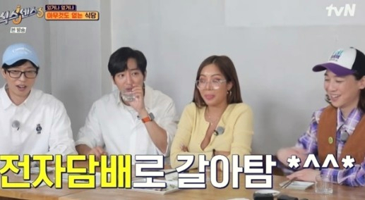 이어 가수 제시는 담배를 끊었다. 전자담배를 피운다”고 덧붙여 녹살은 ‘식스센스3’의 매운맛에 놀란 듯 폭소를 터뜨렸다. 유재석은 개인의 취향이니까라며 고개를 끄덕였다.