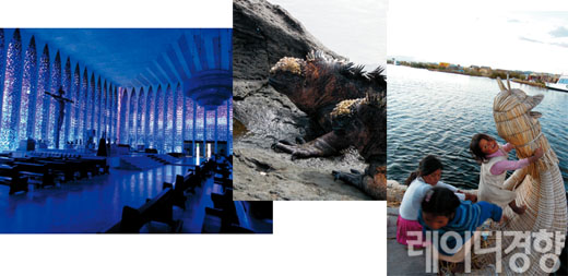 한 브라질리아의 빛의 성당 2 에콰도르 갈라파고스 섬의 바다 이구아나 3 페루와 볼리비아 국경에 위치한 티티카카 호수의 아이들 남미에서 돌아온 지 한 달이 지났지만 여전히 그의 마음은 볼리비아 소금 사막과 갈라파고스 섬 사이 어딘가를 걷고 있다. 남미에서 보낸 두 달여의 여정을 평생 잊지 못할 것이라는 그는 “죽을 만큼 힘들었지만 그래도 다시 가고 싶다”고 말했다.