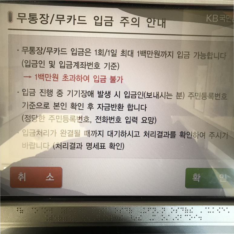 ATM기기를 이용하는 은행에서 입금하는 것보다 너무 기다리지 않아도 되고 더 쉽게 보낼 수 있는 방법입니다.그래서 저는 ATM기기를 이용하여 보내는 방법을 추천합니다.