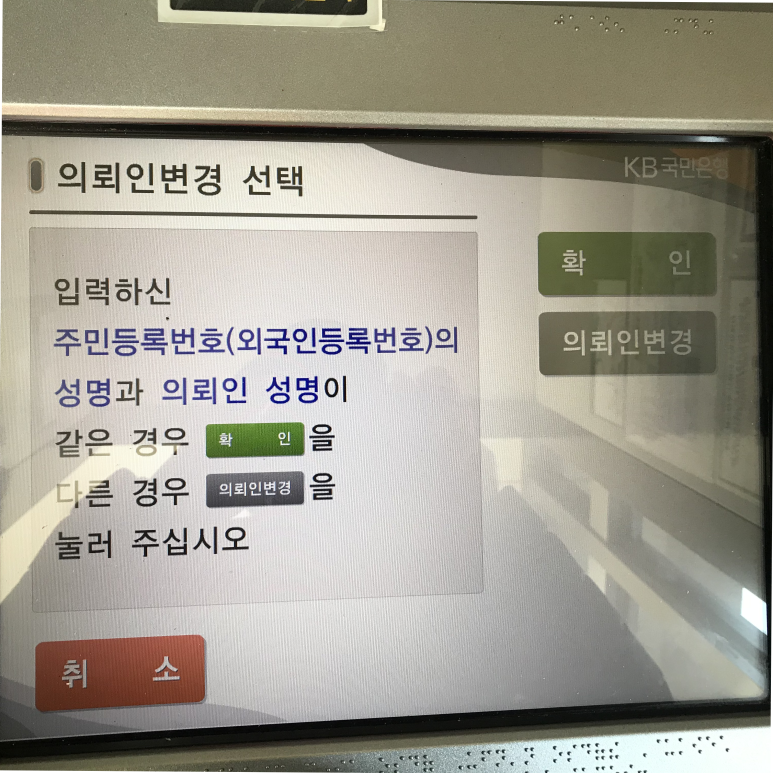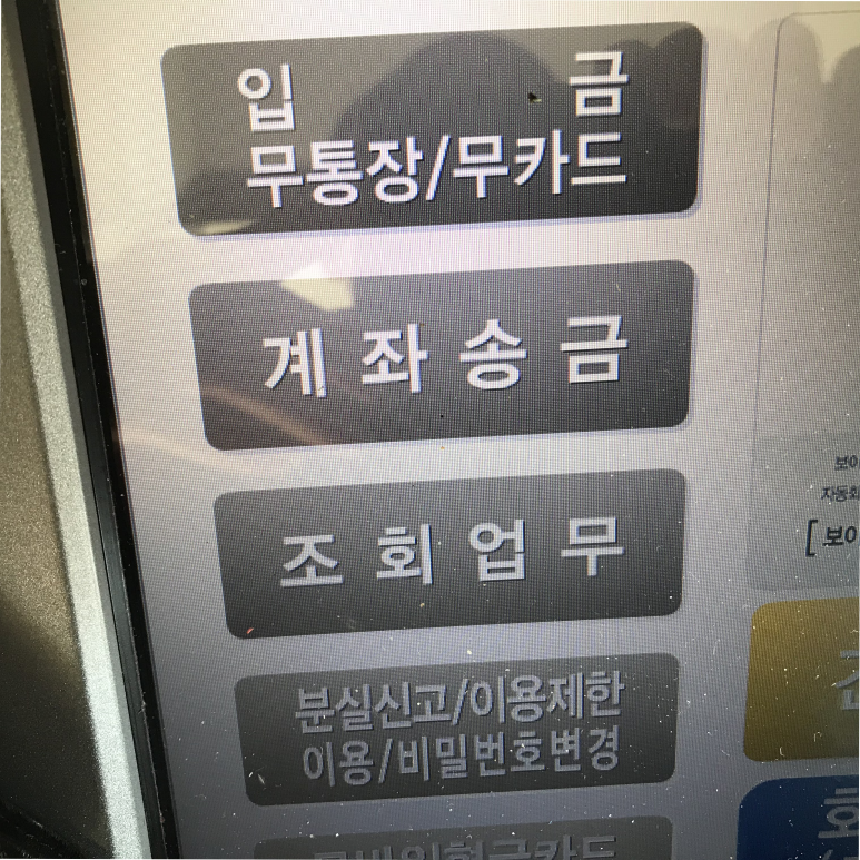 ATM기기에서 이체를 이용할 때 주의할 점은 반드시 수령하는 분의 은행 기기에서 진행해야 한다는 점입니다.