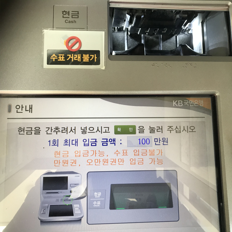 은행에 가서 하는 것의 장점은 천원권, 오천원권도 넣을 수 있고 어느 은행이든 입금할 수 있다는 것입니다.
