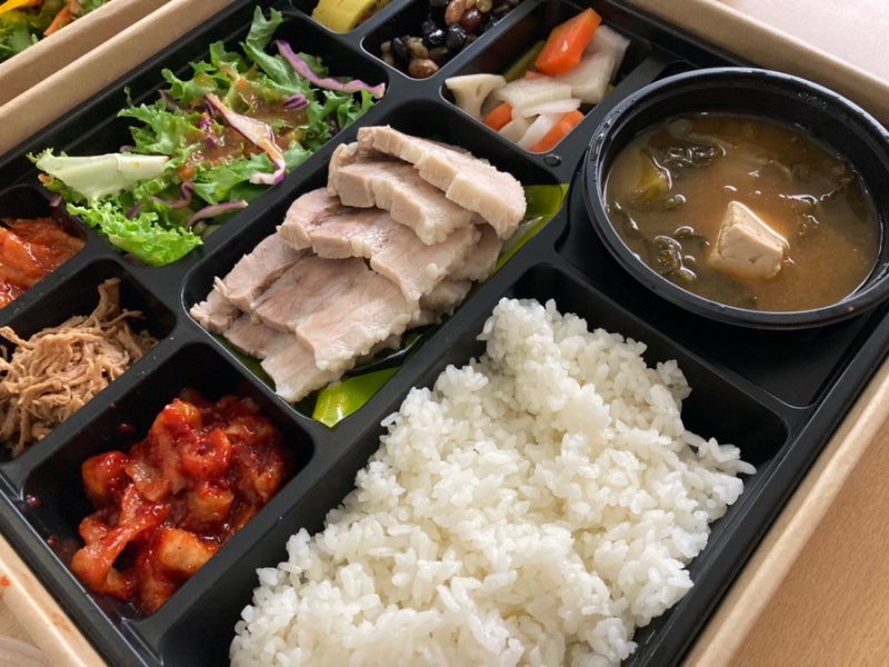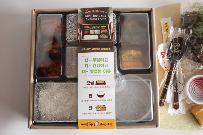 원하시는 시간 적어서 시간 맞춰서 가져다 달라고 부탁드렸는데 정말 시간 맞춰서 아니 조금 여유있게 가져다 주셔서 너무 좋았고 따뜻하게 즐길 수 있었어요 🙂 젓가락, 숟가락, 도시락 2개, 추가한 떡쌈까지 완벽하다 완벽+_+