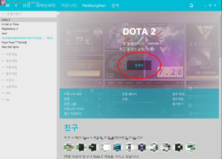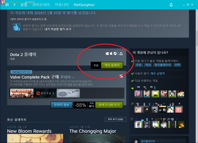 - 스팀샵을 눌러 DOTA2를 검색합니다.