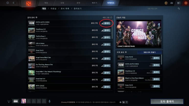 5. 아케이드 맨 위에 DOTAAUTOCHESS를 플레이 합니다.
