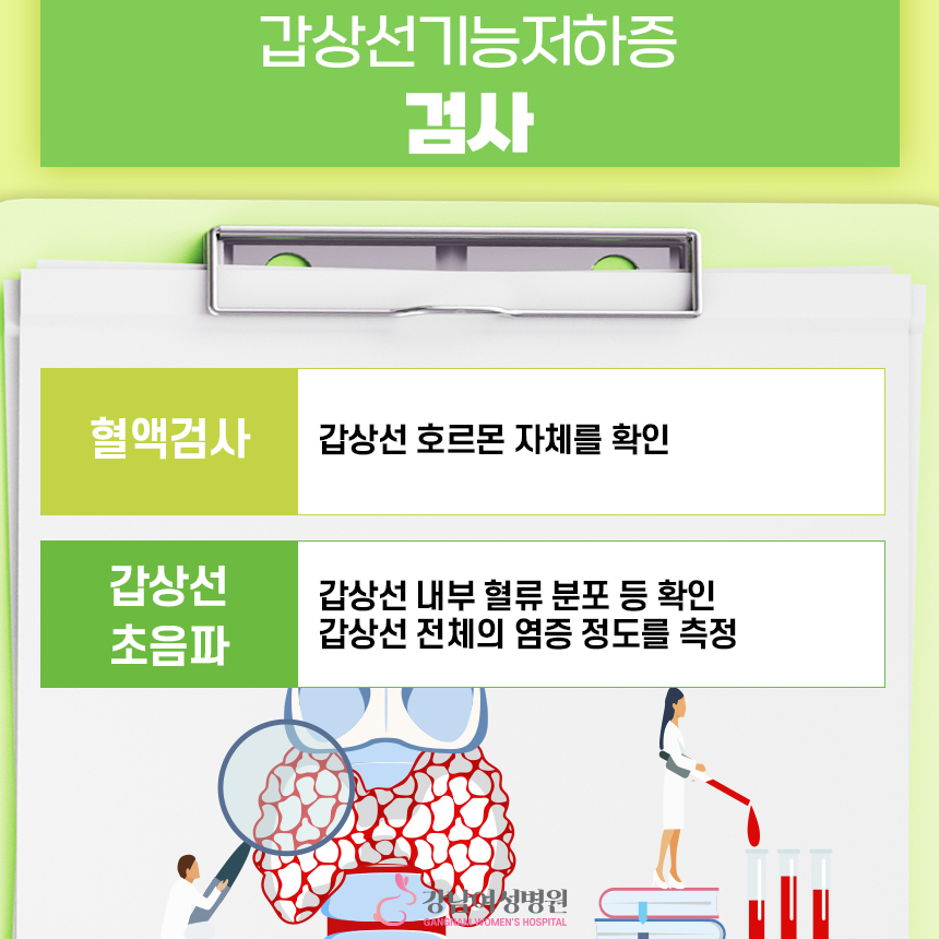 갑상선 기능 저하증은 보통 혈액 검사를 통해 진단할 수 있으며, 갑상선 조직의 상태를 확인하기 위한 초음파 검사를 실시하기도 합니다.