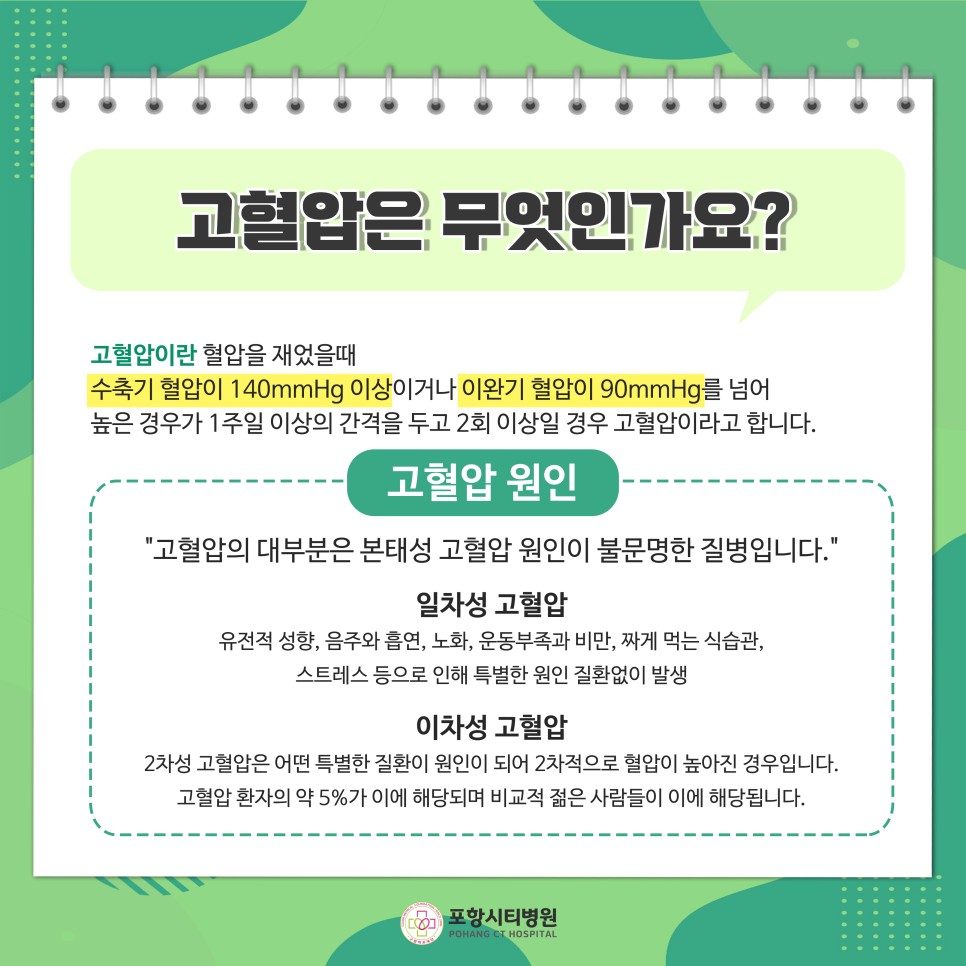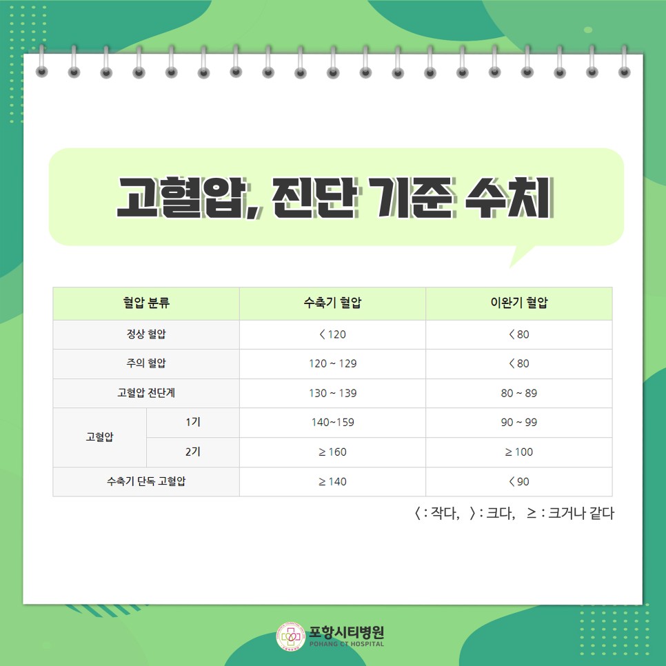고혈압의 원인과 증상 및 진단기준, 치료방법 등 / 포항시티병원