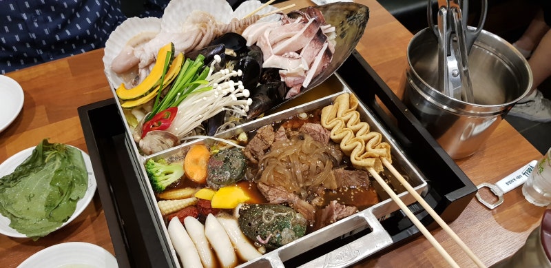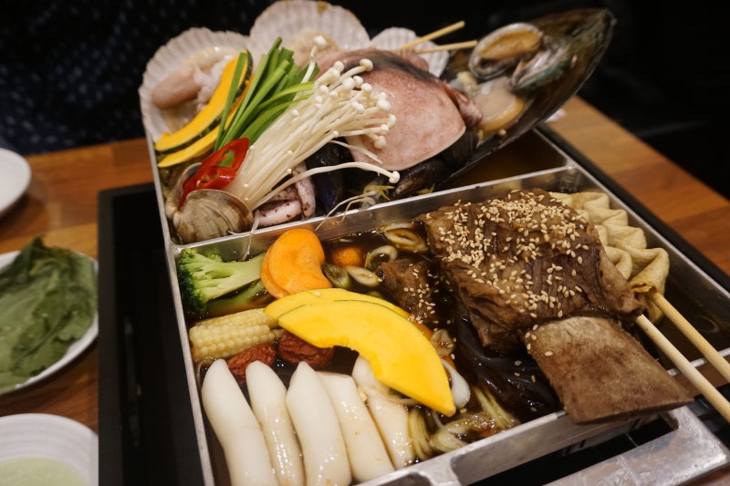 다양한 인기명의 메뉴, 해물과 소갈비가 콜라보된 요리였는데, 친구와 나는 보양식을 위해 왔기 때문에 청주 보양식 제목에 어울리는 초갈찜을 주문했다.초갈찜은 조개와 해물찜, 그리고 소갈비찜으로 구성되어 있다.메뉴에는 아이들을 위한 어린이 돈가스도 있어 가족끼리 외식을 해도 걱정이 없을 것 같았다.