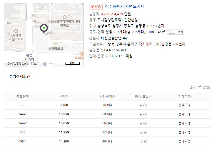 청주 미분양 아파트 봉명리치몬드시티 공급정보