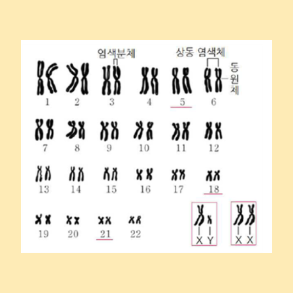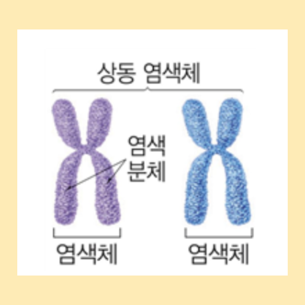 상염색체는 암수 공통으로 가지고 있는 염색체인데, 사람의 경우 1번부터 22번까지 해당됩니다.