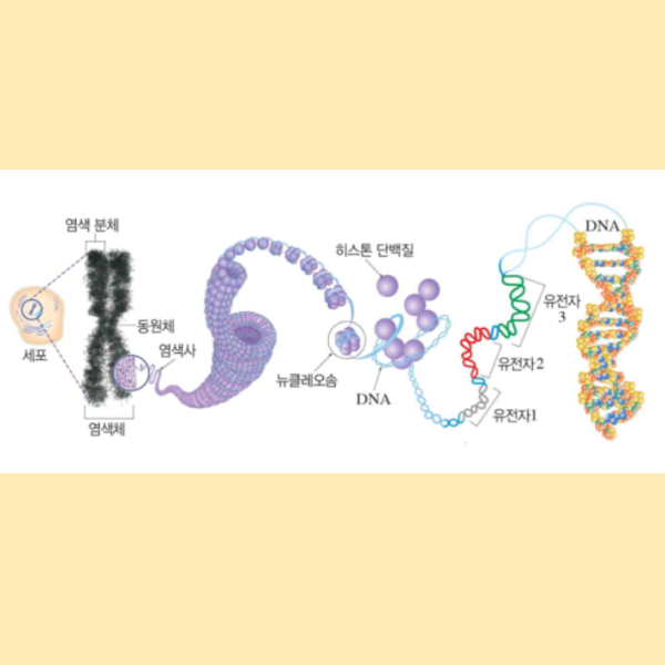 세포가 분열할 때 염색체가 굳어져 나타나는 DNA와 단백질로 구성된 것을 우리는 염색체라고 부릅니다.