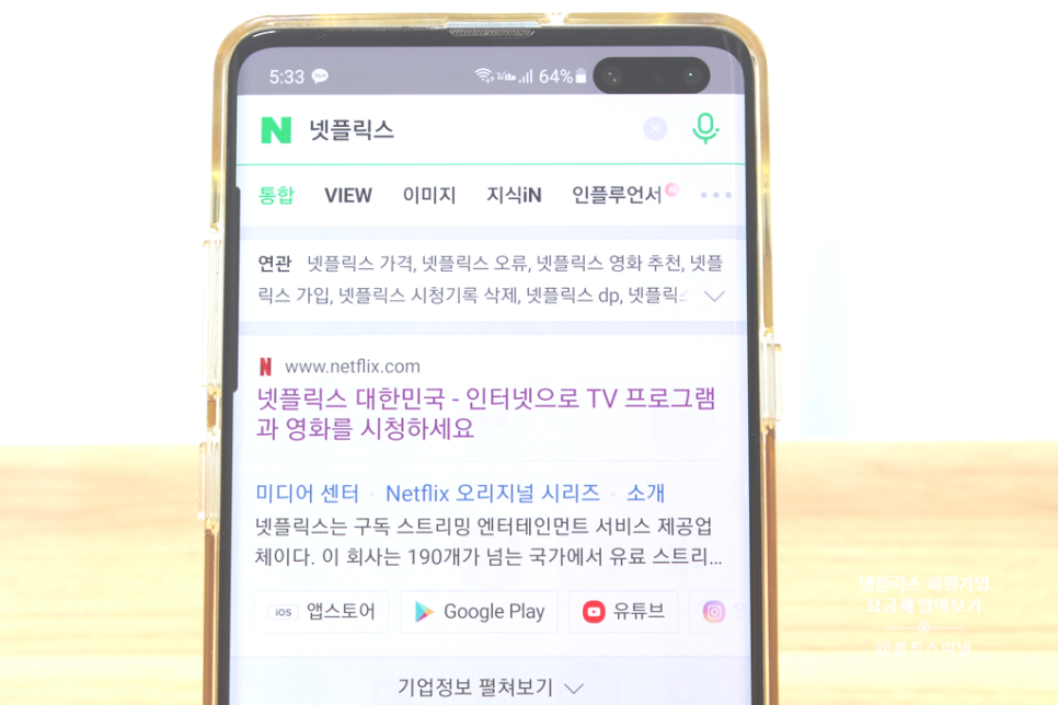 안내 링크를 누르거나 구글 플레이스토어 등에서 직접 검색하여 넷플릭스 앱을 설치합니다.
