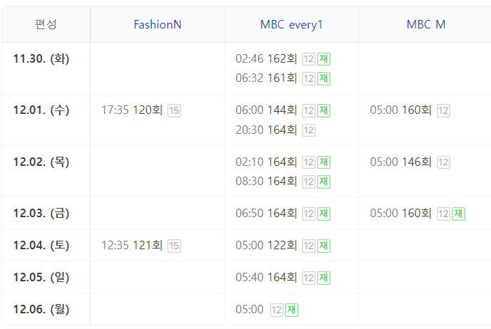 12월 1일 저녁 8시 30분 MBC에브리원 입니다.
