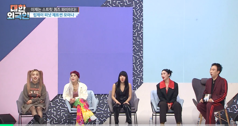2018년 11월 17일부터 시작된 장수 프로그램입니다. 매주 수요일을 기다리며 한국인보다 더 한국인 같은 대한외국인을 보며 한국에 대한 애정이 느껴집니다.지난주 <대한외국인> 163회에서는 최근 핫한 프로그램 슈퍼멤버 립제이, 땅콩, 제트썬, 그리고 모아나가 출연해 대한외국인 시청률 1.4%를 보였습니다. 왼쪽부터 모아나, 제트썬, 땅콩, 립제이 그리고 고정패널 박명수입니다.