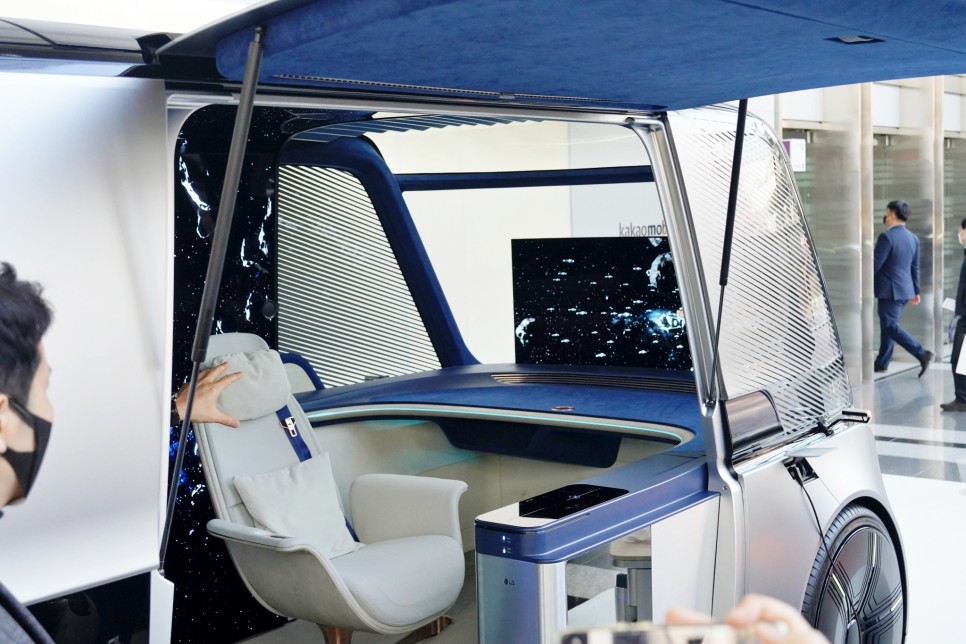 CES 2022에서 LG가 공개한 옴니팟입니다 미래의 모빌리티입니다. 미래에는 카카오 T를 통해 LG 옴니팟의 차량호출이 가능하다고 합니다. 피트니스, 캠핑 공간, 재택 사무실 공간에 맞게 호출이 가능합니다.