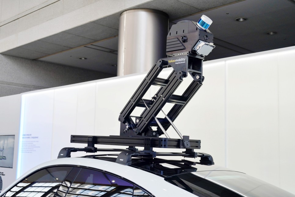 위의 자율주행차는 실제로 판교에서 시범서비스를 운영하고 있는 차량이라고 합니다. 5개의 라이더, 5개의 카메라, 10개의 레이다의 센서 융합으로 카카오 T 플랫폼에서 승객이 탈 수 있다고 합니다.