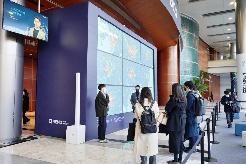 이번 NEMO 2022의 마지막 도슨트! 모빌리티 아틀라스입니다. 카카오 모빌리티 서비스와 기술 고도화에 이용하는 빅데이터를 시각화하여 한눈에 보여주는 시스템입니다.