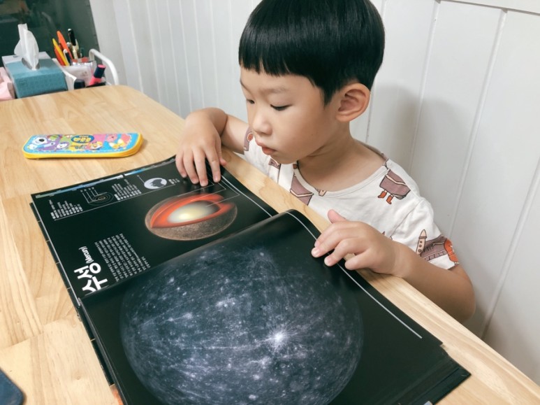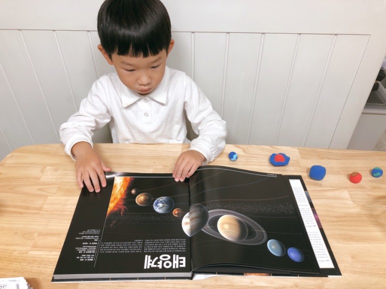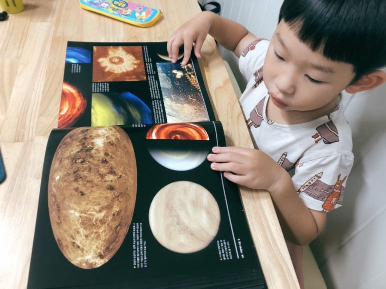 지금까지 영유아용 우주 서적만 읽어줬는데 역시 수준이 한층 높아진 것을 느꼈습니다. 중고생도 잘 못할 정도로 전문적인 지식이 대부분인 것 같습니다.