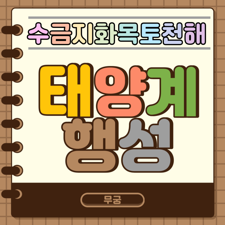 참고자료 : [네이버지식백과]태양계 행성 – 수금지 화목토천해 (이미지사이언스, 한국천문연구원) [네이버지식백과]태양계 [Solar system] (천문학 백과) [네이버 지식 백과]명왕성은 왜 행성이 아닙니까? 재미있는 별자리와 우주이야기, 2014.7.18., 이충환, 신광복, 손정근, 서석근, 윤성철