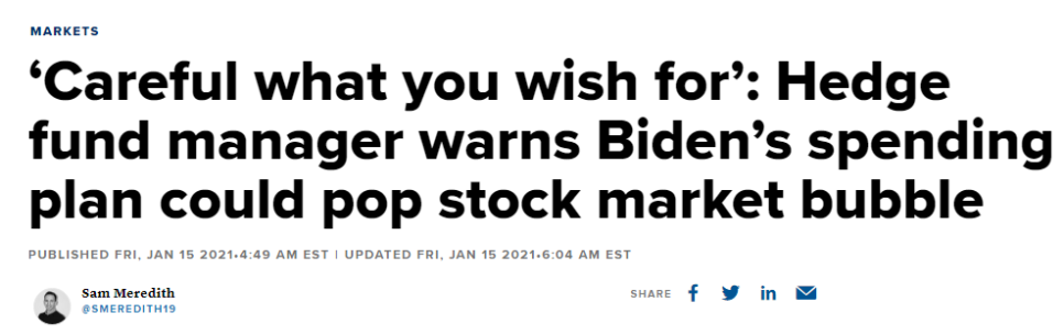 미국의 헤지펀드 매니저는 바이든 경기부양책이 증시에 거품을 일으킬 수 있으니 조심하라고 경고했습니다. 1929년 월스트리트 붕괴를 앞두고 보이는 재정환경을 재현할 수도 있다고 경고했습니다. 그 당시 주식 시장의 붕괴와 경기 대공황으로 이어졌습니다. 당시 s&p 500 지수가 86%나 떨어져 1954년까지 이전의 최고점을 넘지 못했다고 합니다.