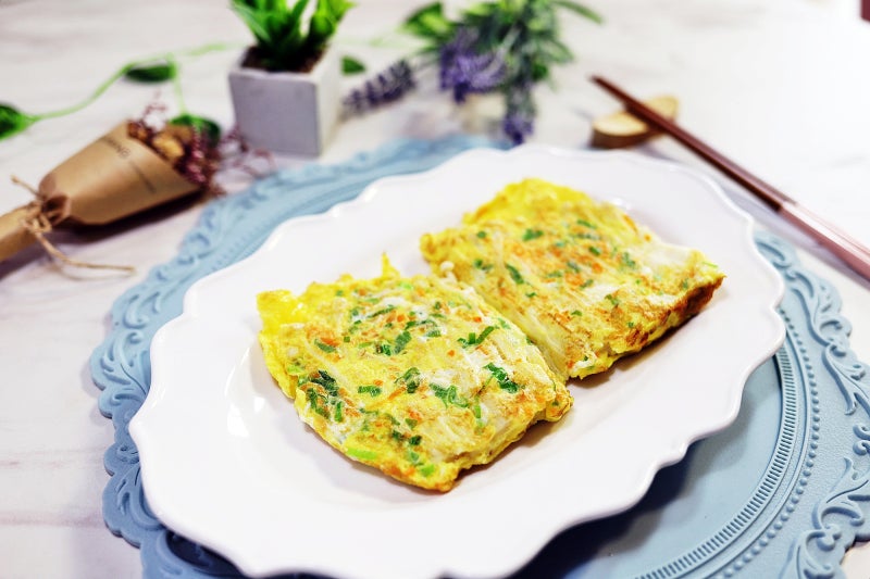 윗부분이 매트해져서 수분감이 줄어들고 밑면 끝 부분이 노릇노릇하게 익으면 그때 뒤집으세요.중불과 중강불 사이에서 불을 조절하면서 부침개 역할을 할 정도로 구우면 되는데요.구우면서 프라이팬을 흔들면 골고루 오일이 묻어 전체적으로 바삭하게 구울 수 있습니다.