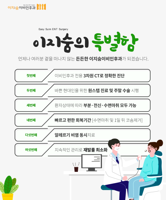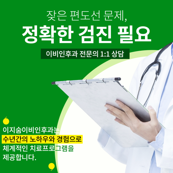 이비인후과는 풍부한 경험을 가진 2명의 이비인후과 전문의가 환자 개개인에 맞는 진료를 통해 환자의 빠른 회복과 쾌유를 위해 노력하고 있습니다.부산광역시 중구 구덕로 40호림빌딩 7층