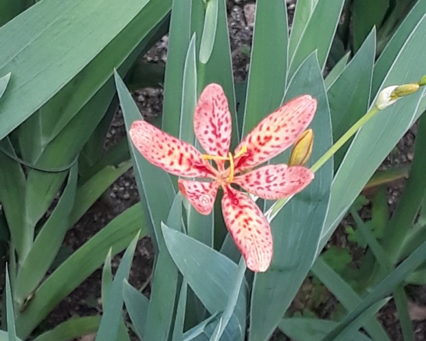- 과명 : 붓꽃과 / 연꽃과(Iridaceae) * 학명 : Belamcandachinensis (L.) DC. * 약명 : 사강화 * 별명 : 병죽란, 호성초, 산대도, 마호성자, 금호접, 냉수화, 황강, 자량강, 평죽, 범부채 출처 : 한국의 산야초