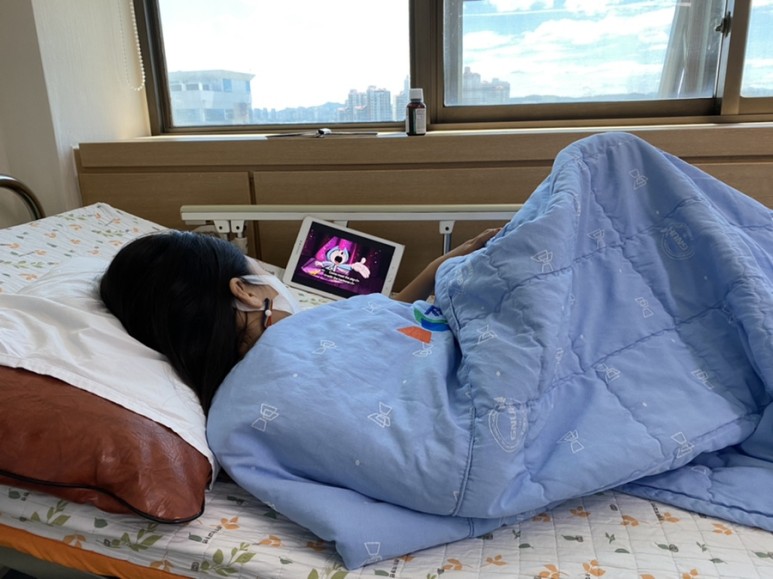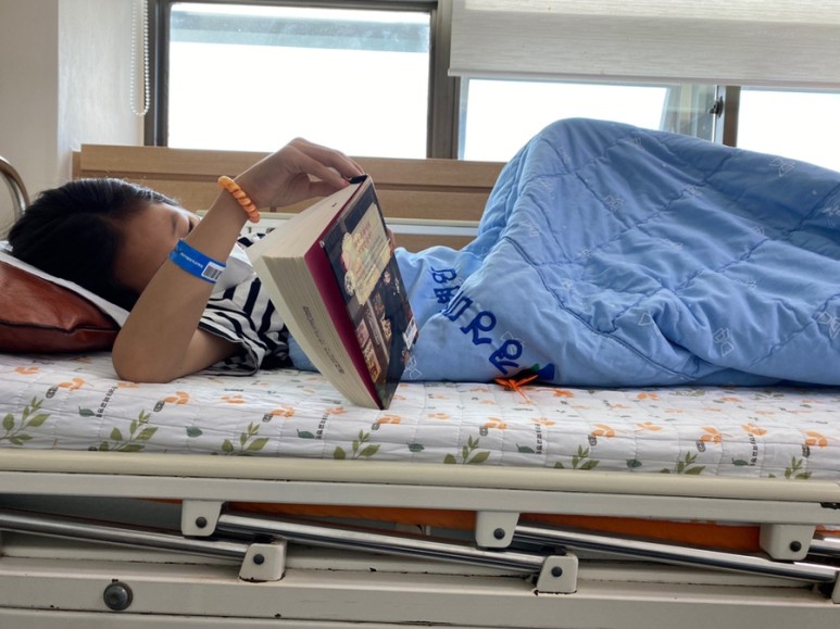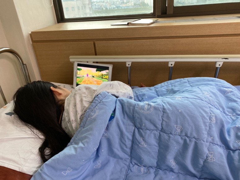 수술이 끝나고 회복실로 데리러 가서 잠을 못 자게 깨우라고 하지만 마취에서 깨어나려는 어머니 때문에 애를 먹었다.아이는 비몽사몽간에 입에서는 피를 토하느라 바빴다.다행히 30여 분이 지나서야 진정되자 입원실로 옮겨졌다.정신을 차려보니 심심했는지 가져간 패드를 보겠다고 해 보였다.혹시나 해서 가져간 패드는 입원 내내 소중하게 활용했다.가져간 책도 가끔 읽었는데 집중해서 책 읽는 것보다 편하게 영상 보는 게 좋았던 것 같아.