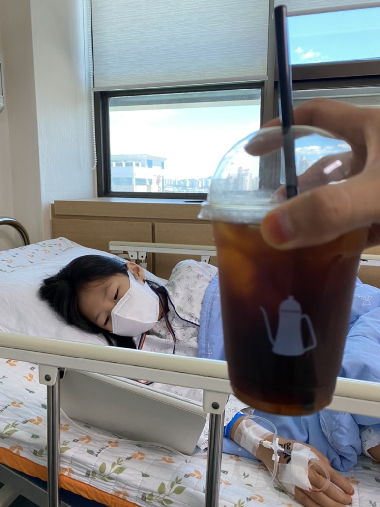 오후가 돼 점심은 단식해야 하고 힘없이 패드만 보던 딸의 아침밥은 어니 수술 때문에 나도 안 먹고 힘이 없었는데 점심은 그래도 먹어야 힘이 나니까 간단히 먹고 커피를 사다가 마셨다.딸의 수술로 나도 덩달아 긴장하고 잠을 설쳐 피곤한 탓에 바빴지만 커피를 마시니 힘이 났다.