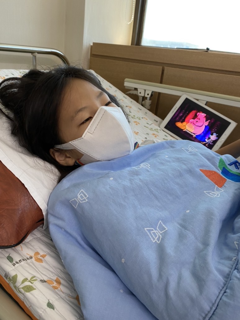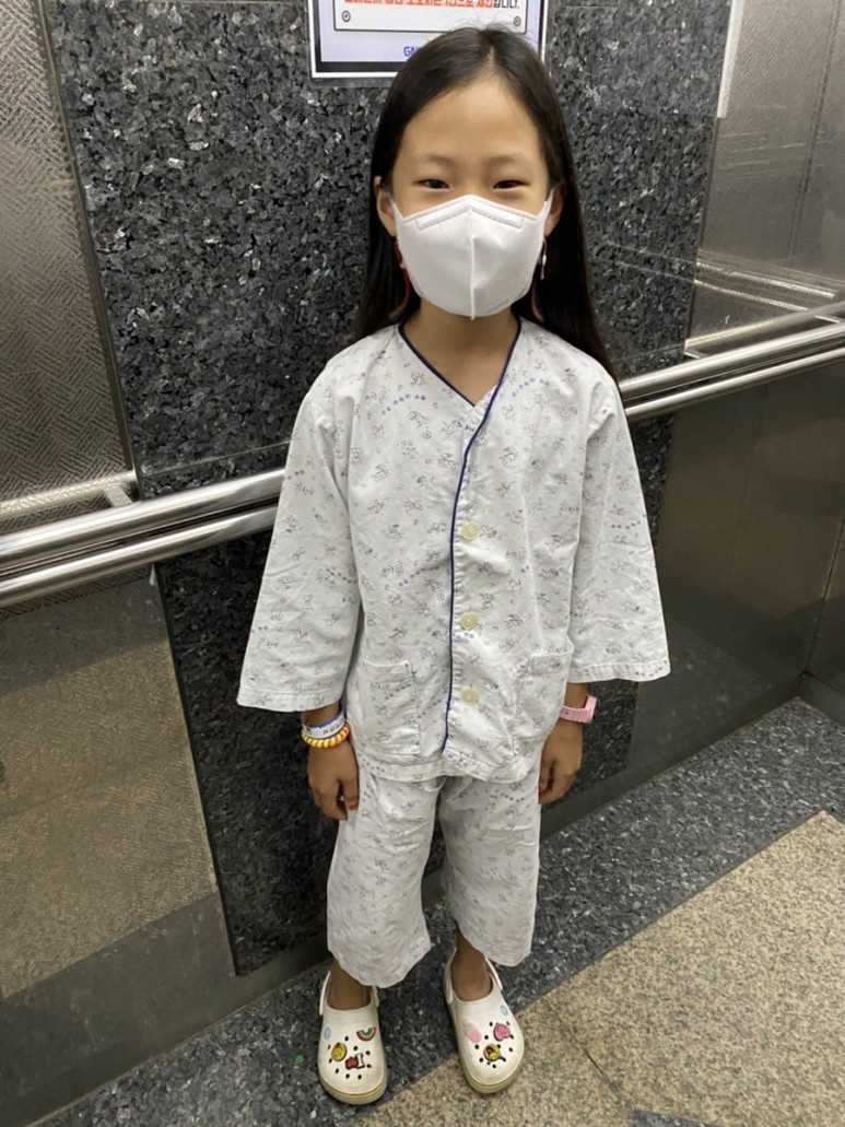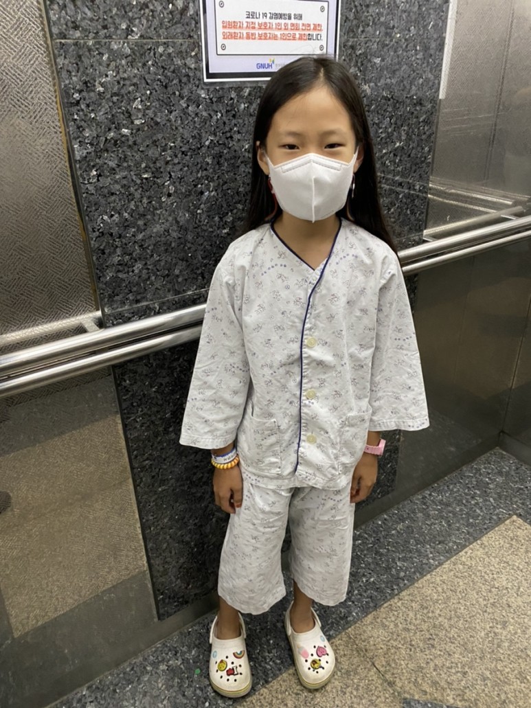 애니는 어릴 적부터 편도선이 큰 편이었던 이비인후과에 갈 때 의사 선생님이 아이가 또래보다 큰 편에 속해 당장 수술할 필요는 없지만 나중에 더 크더라도 줄지 않으면 수술이 필요할 수도 있다고 말씀하셨다.그리고 자연스럽게 자라면서 줄어들 수 있다고 하셔서 좀 지켜봐야겠다.그렇게 시간이 지나 작년 초등학교 2학년 때 병원에서 받은 건강검진 때 학년이 더 올라가기 전에 수술을 하는 것이 좋겠다고 말씀하셨다.그 말을 듣고 무척 고민했고, 오히려 수술을 하려면 빨리 해버리는 것이 좋다고 생각했다.코로나 시국에 걱정도 되고 과연 하는 것이 옳을까 싶었지만 그저 아이를 위해 하는 것이 낫다는 결정을 내렸다. 사실 수술이라는 것은 가급적 피하고 싶고 안 하는 게 최선이지만 하고 나면 결과가 좋은 쪽으로 바뀌면 좋지 않을까 싶어서 긍정적으로 생각하기로 했다. 그리고 수술이 결정된 후 여러 가지 검사와 입원 전 절차가 있었다.우선 수술 가능 여부에 따른 검사를 실시했지만 편도 절제 후 지혈이 이뤄져야 하는데 정상적으로 나타내는 수치가 어니는 맞지 않아 추가 검사를 몇 차까지 실시했다. 피도 여러 번 뽑아야 했고 병원도 수술 전 검사와 결과를 듣기 위해 추가로 가기도 했다.수술이 결정된 뒤 실시된 검사에서 이상한 결과가 있어 못할까 봐 걱정했다.결국 추가 정밀검사까지 해야 비로소 이상이 없다는 결론이 나 수술 날짜를 잡을 수 있었다.이때 생각만 해도 얼마나 마음 졸였는지 결정하기까지 고민이 많았는데 어렵게 결정된 뒤 뜻밖의 이변에 당황해 힘들었다.그리고 입원 전 코로나 검사 수술을 하는 어머니와 보호자인 나도 검사를 받았고 모두 음성이 나와야 입원할 수 있었다.일요일 입원했다가 월요일 수술을 하고 화요일 퇴원하는 2박3일 일정으로 남편도 출근해야 했기 때문에 둘째 아들 미니는 친정에 맡기고 어머니의 도움을 받았다.일요일 오후 5시경 입원 절차가 진행됐고 집에서 점심을 먹고 짐을 챙겨 남편과 차남에게 인사를 한 뒤 둘이서 경상대병원으로 향했다.