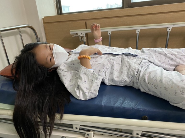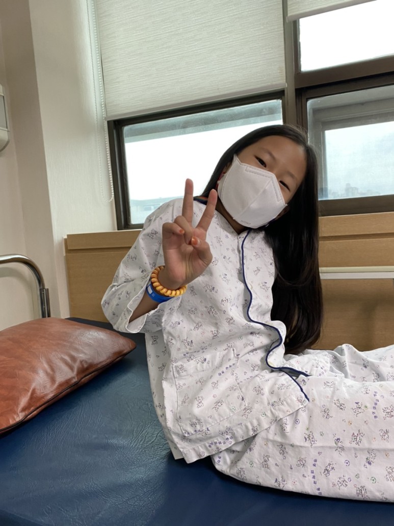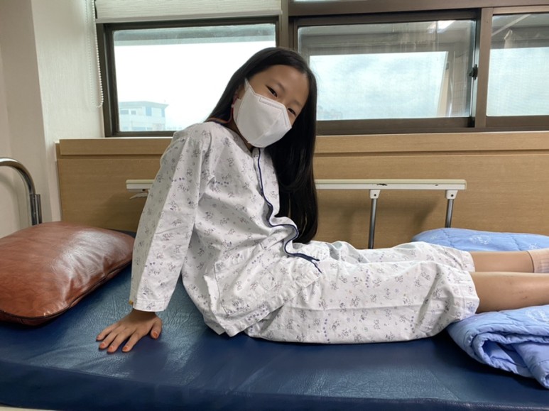 환자복으로 갈아입고 침대에 누워 본 애니는 표정도 얼굴도 환하다.수술을 하기 전 편도염을 자주 앓았고 매번 편도가 붓고 열이 나는 증세가 있어 겨울이 되면 여러 번 병원을 찾아 약을 처방받았다. 특히 편도염은 고열을 동반하고 항상 편도가 부으면 기본 38도 이상이 돼 밤마다 보초를 서야 했다.편도절제수술을 한 뒤 잦은 편도염도 더 이상 앓지 않고 호흡도 편안해지고 잘 때도 코가 마르고 편해진다는 느낌을 받자 엄마에게 꼭 필요하다는 생각이 들었다.