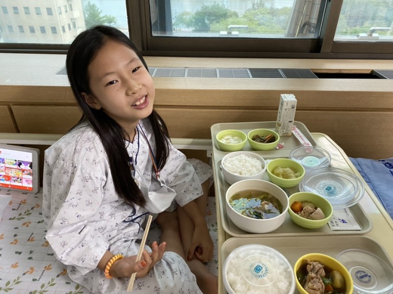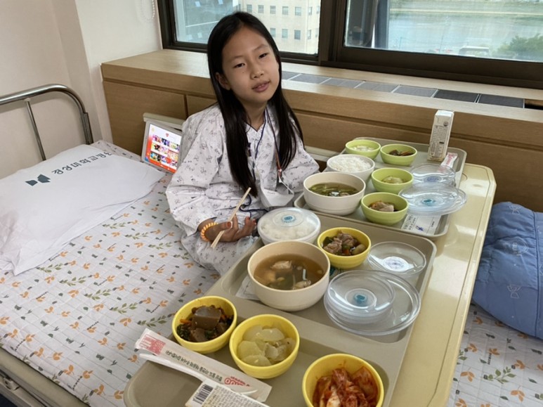 수술 전에 처음이자 마지막으로 먹은 병원 입맛이 없다고 해서 잘 못 먹었어긴장도 되고 걱정도 되고 해서 식욕이 없었던 것 같았다. 아이 곁을 떠나지 못해 나도 함께 학부모 밥을 신청해서 저녁에 해결했다.