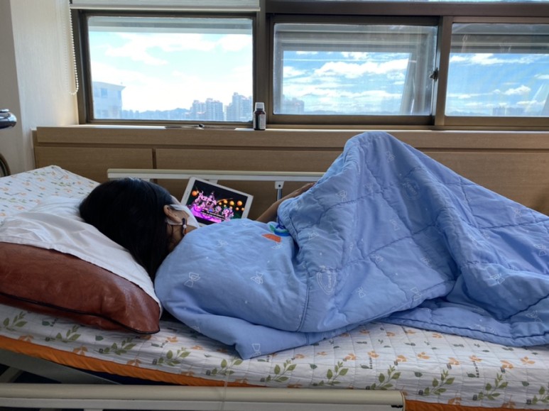 병원에 도착한 뒤 입원 수속 절차를 거쳐 병실의 안내를 받아 창가 자리에 앉았다.같은 방이라도 창가 자리가 배정돼서 다행인 게 창밖으로 경치를 볼 수 있어 답답하지 않았고, 여러 사람이 함께 쓰는 공간이라 개인적인 공간의 자유가 어려웠지만 창가 쪽에서는 좀 나은 편이었다.