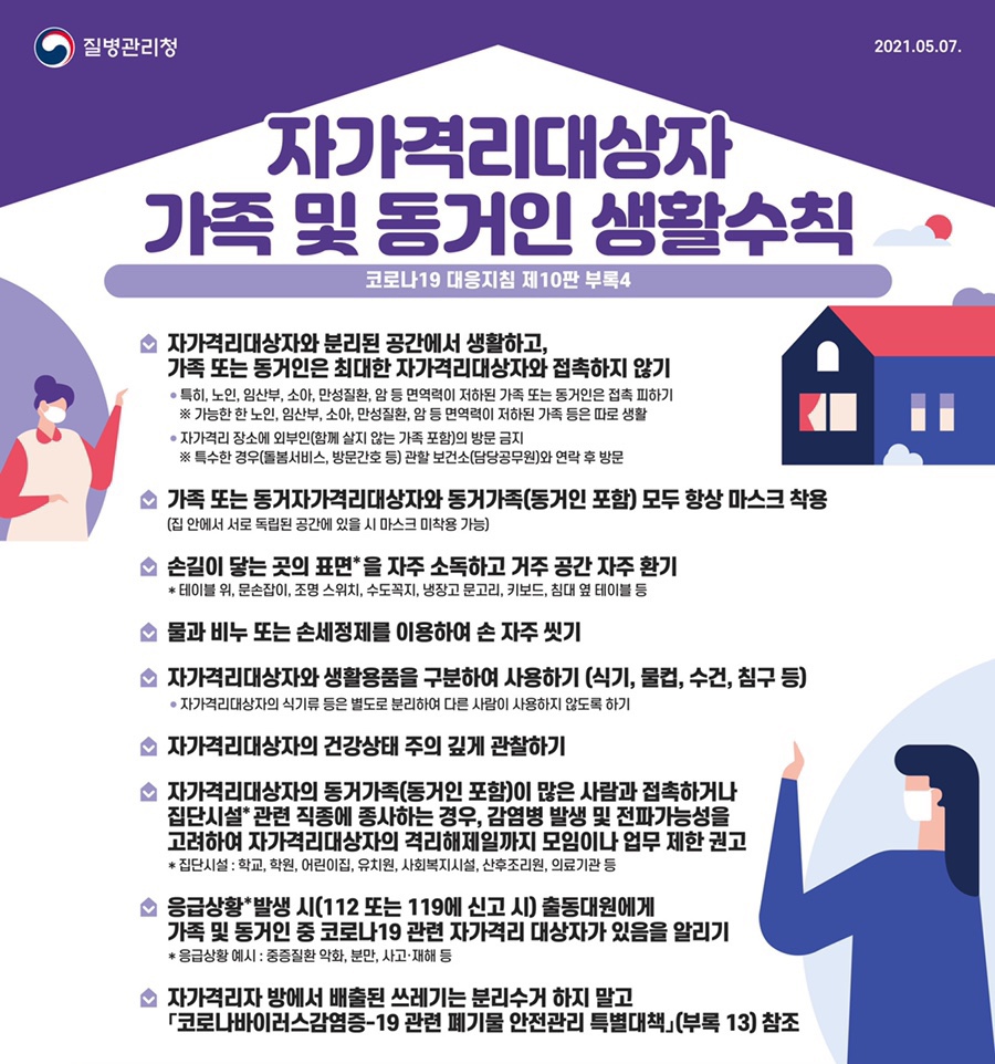1. 자가격리 대상자와 분리된 공간에서 생활하며 동거인은 접촉하지 말 것