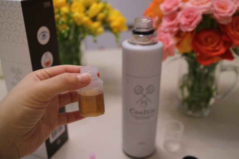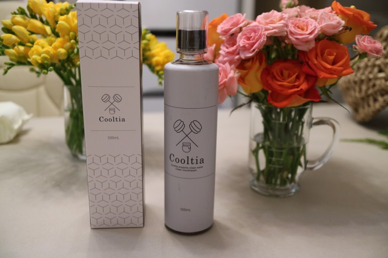 쿨티아 뚜껑 1/3지점 정도 잡고 고개를 뒤로 젖힌 상태에서 20~30초 목 안쪽까지 닿도록 양치질을 하세요.