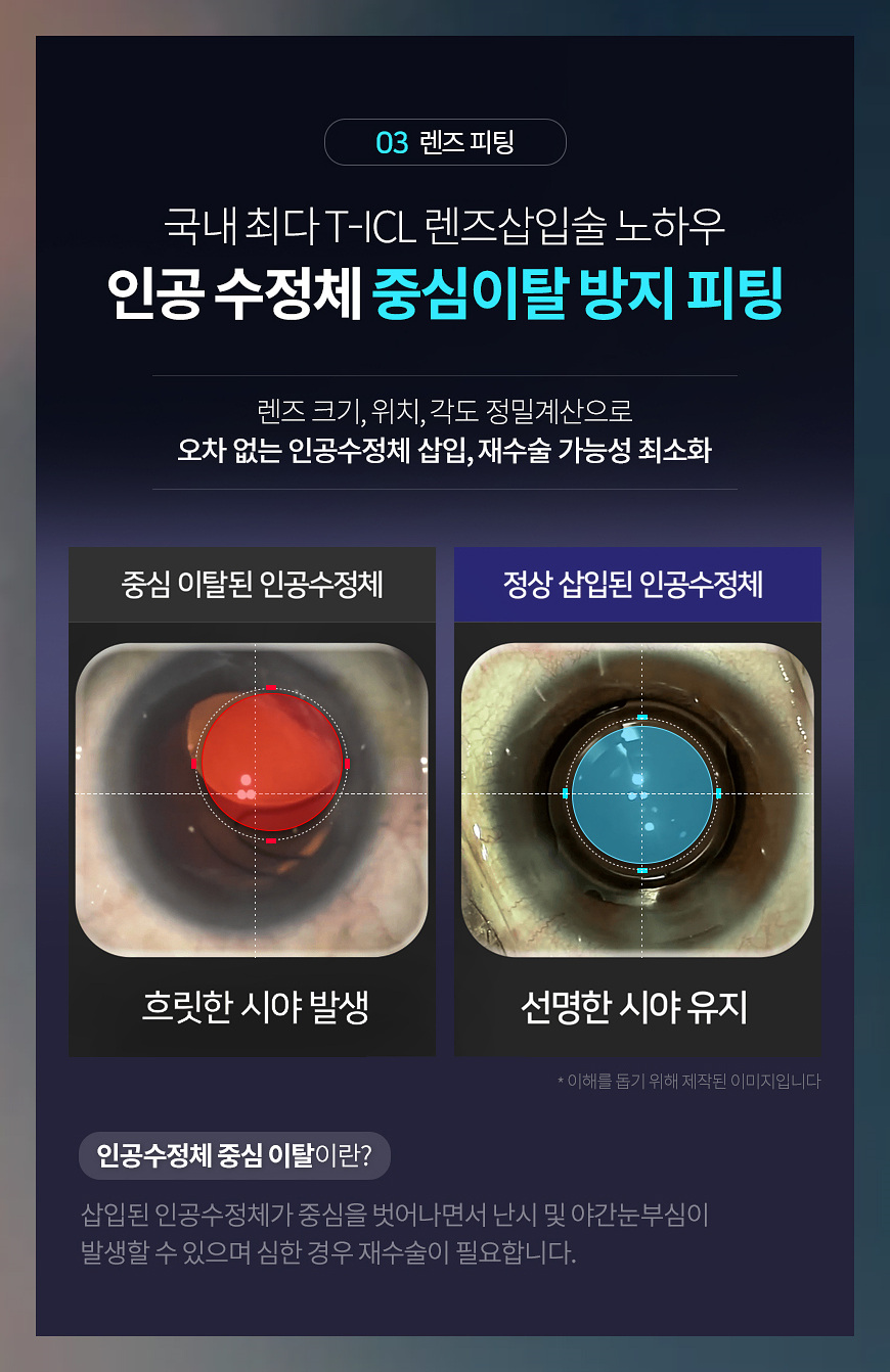 선명한 시야를 오래 유지하고 재수술 가능성은 줄이려면 LENS 크기와 위치, 각도 등을 정확히 계산해 삽입해야 합니다.