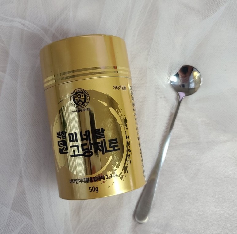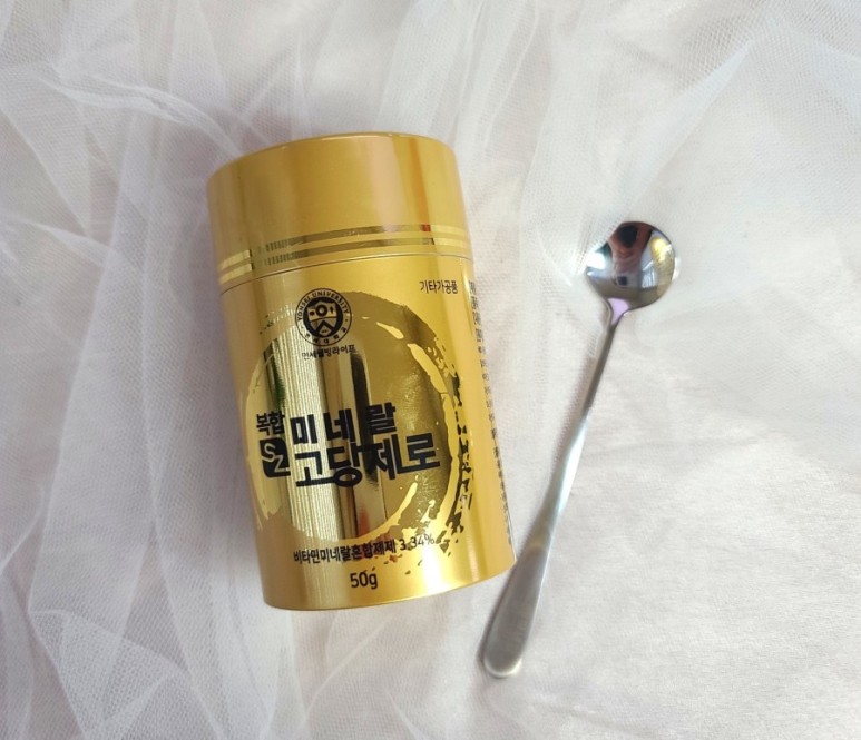 동봉된 티스푼에서 복합 미네랄 고당 제로를 찾아봤는데 가루가 정말 예뻐요!!