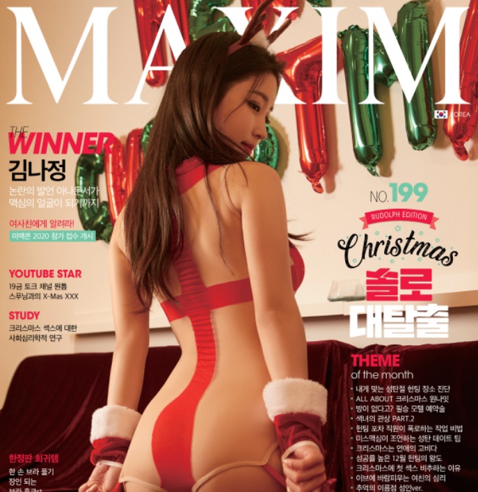 더페이스 오브 코리아 뷰티 모델진이 된 후 이어 열린 2019 미스맥심 콘테스트에서도 당당히 우승한 김나정입니다. 이 콘테스트에서 김나정은 1라운드 예선부터 4라운드를 거쳐 결승에 진출했습니다. 마지막 결승 스테이지에서는 15297표를 획득하여 우승했습니다. 당시 결승에서 얻은 투표소는 미스맥심 콘테스트 역대 결승전에서 두 번째로 많은 투표수로, 1위와 2위의 차득표수는 역대 최다 차표수를 기록하게 되었다고 합니다. 그리고 2019년 12월호 맥심에 김나정의 메인 모델로 선정되었습니다.