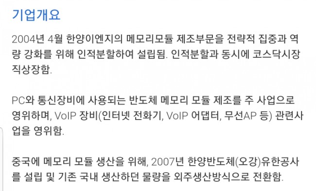 메모리 모듈 사업을 하는 것 같은데 #DDR5 관련주로 볼 수도 있고 #삼성 평택 반도체 투자 관련주로도 묶이네요.