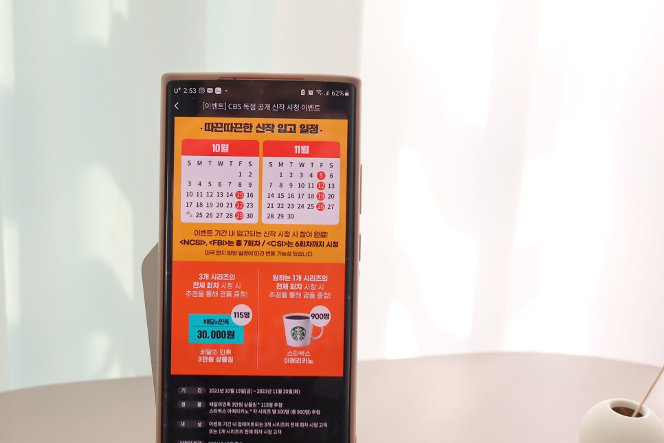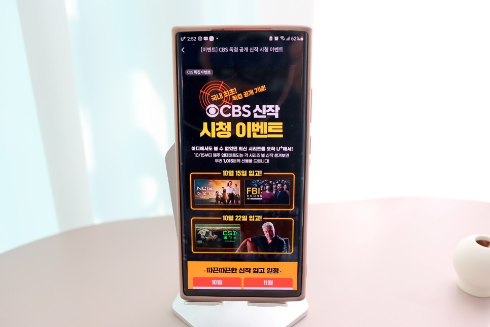 이외에도 유플러스 모바일 TV에서 시청이나 구입 등 할인이 매주 이루어지고 있습니다.CBS의 신작을 보고 행사에 참여해 보세요.