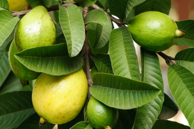구아바 잎에는 폴리페놀이 함유되어 있는데, 당질이 포도당으로 분해되는 것을 억제해주므로 식사와 함께 섭취하면 혈당이 상승하는 것을 막아 당뇨병 예방에 도움이 된다고 합니다.