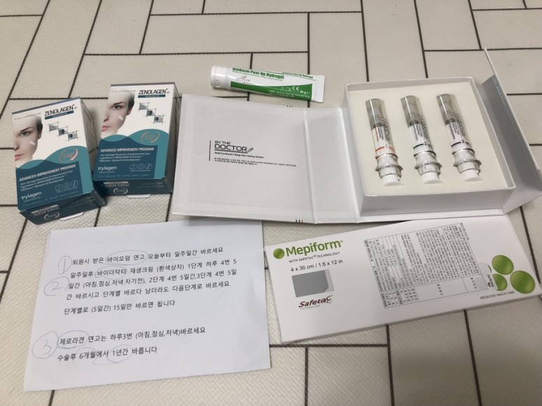 진료가 끝나고 흉터 관리 제품을 많이 받았다.